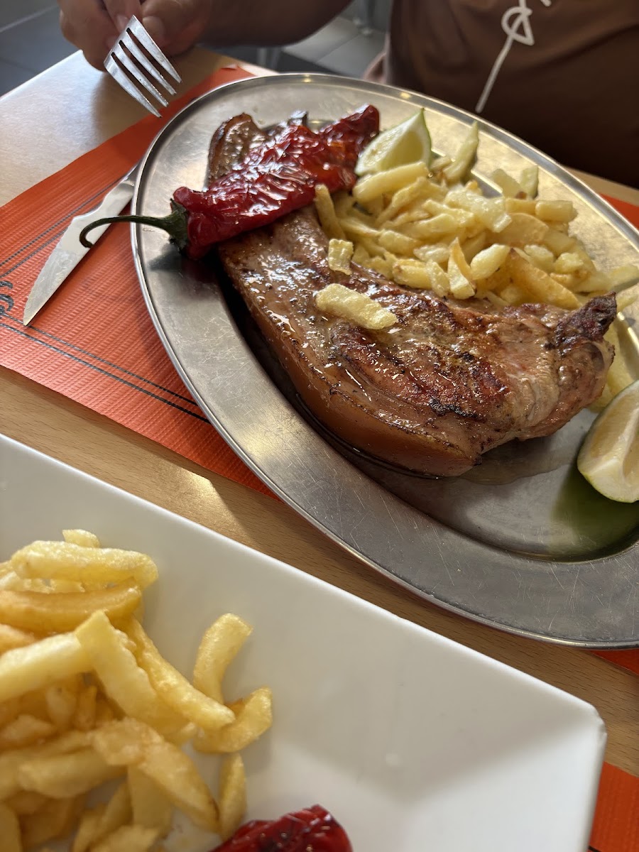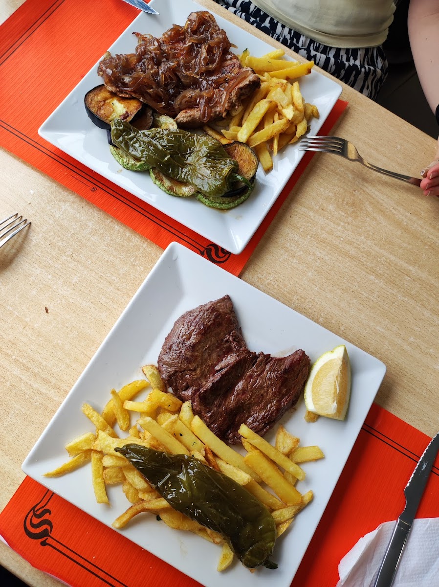 The culinary offerings here are diverse, showcasing galore options for any palate. A standout feature from the menu is the grilled pork steak paired beautifully with crispy, golden Patatas Fritas and roasted Italian peppers, all for just €11.35. For those in search of something a touch more decadent, the Solomillo de Cerdo elegantly dressed with mushroom sauce, served with a side of rice and fries at €18.85, is a dish that truly embodies comfort and indulgence. It’s a must-try for anyone who loves sophisticated flavors presented beautifully.