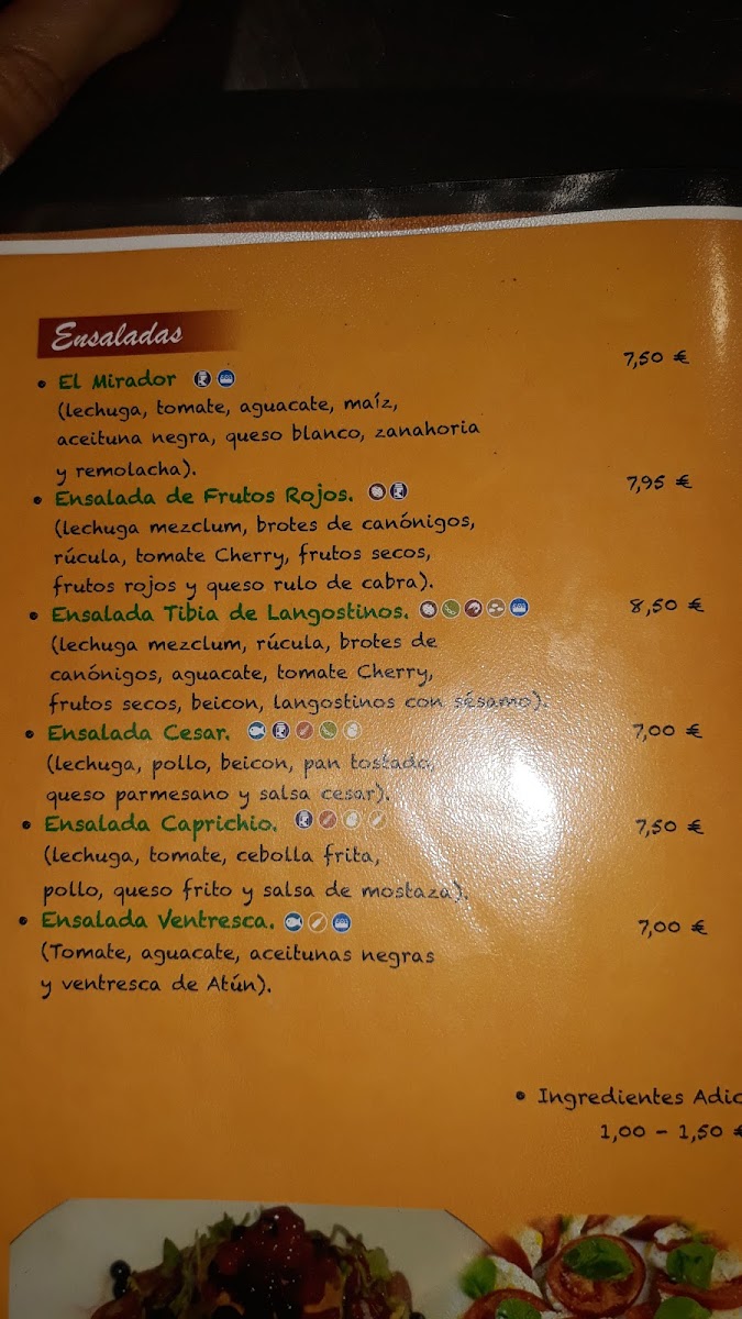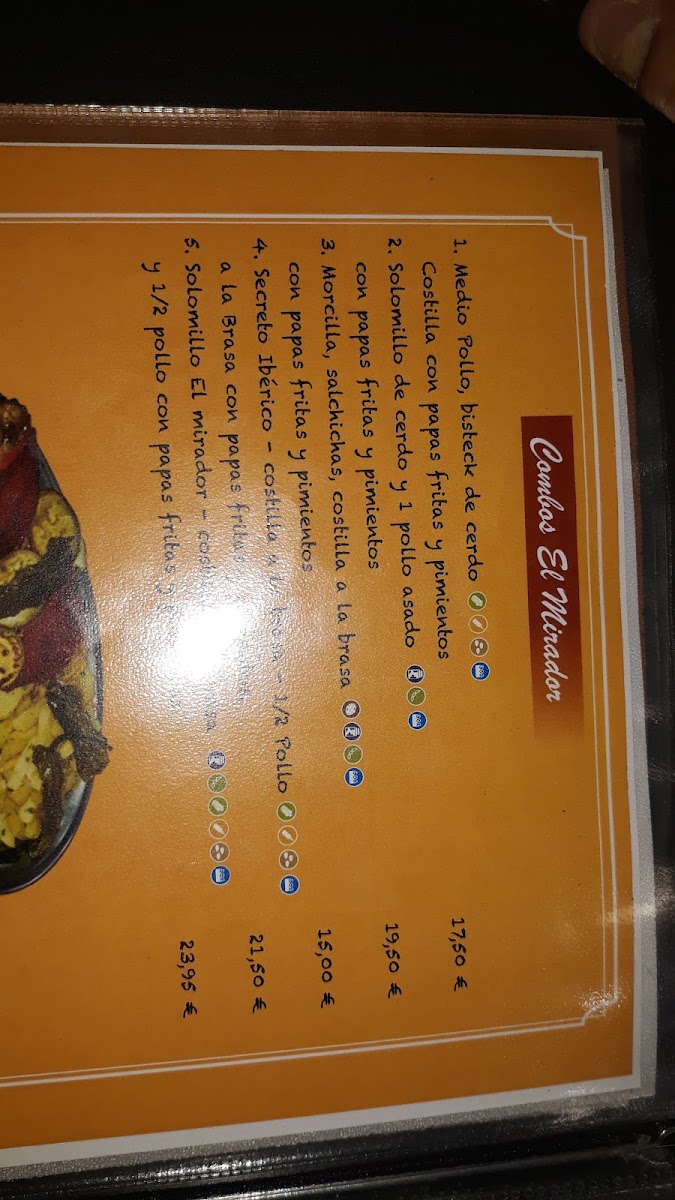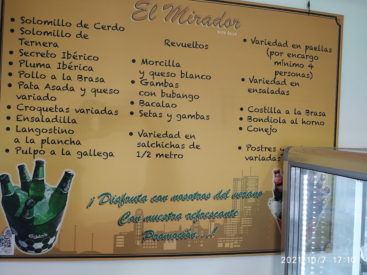 Welcome to Restaurante El Mirador, a delightful dining gem nestled in Santa Cruz de Tenerife. This restaurant offers a menu that celebrates fresh ingredients and traditional flavors. Signature dishes like the Costilla Asada A La Brasa (roasted ribs) and Solomillo De Cerdo Con Salsa De Champiñones (pork tenderloin with mushroom sauce) showcase a mastery of grilling and robust seasoning, all served with delectable sides like crispy fries and roasted peppers.